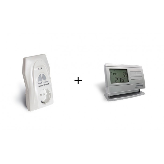 Ansamblu format dintr-un receptor-priza Computherm Q1RX si un termostat Q8RF (TX).